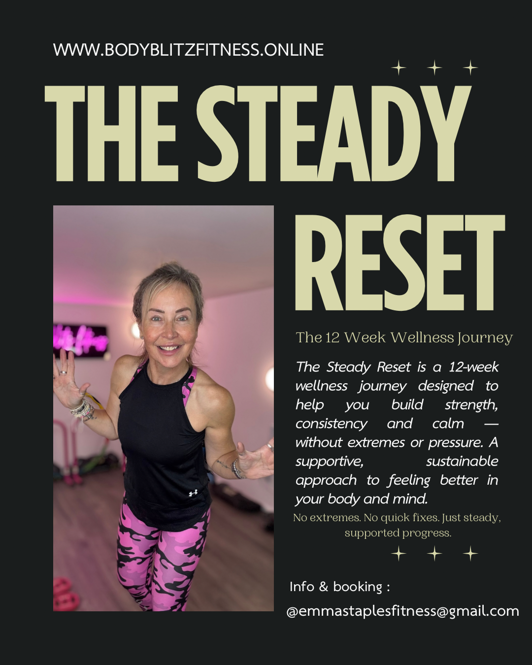 The 12-Week Gentle Reset is designed specifically for women in midlife who want a realistic, supportive approach to fat loss, strength and hormone balance.